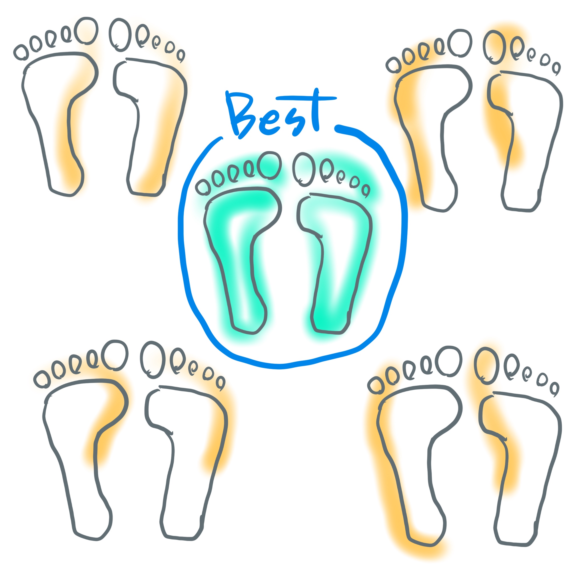 어느발은 발 안쪽위주, 발 바깥위주, 대각선 위쪽, 대각선 아래쪽 위주로 걸었을 것입니다.