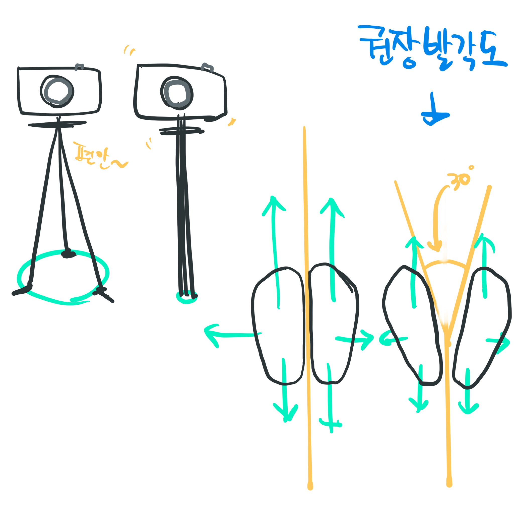우리가 삼각대를 세울 때 안정적이게 세우려면