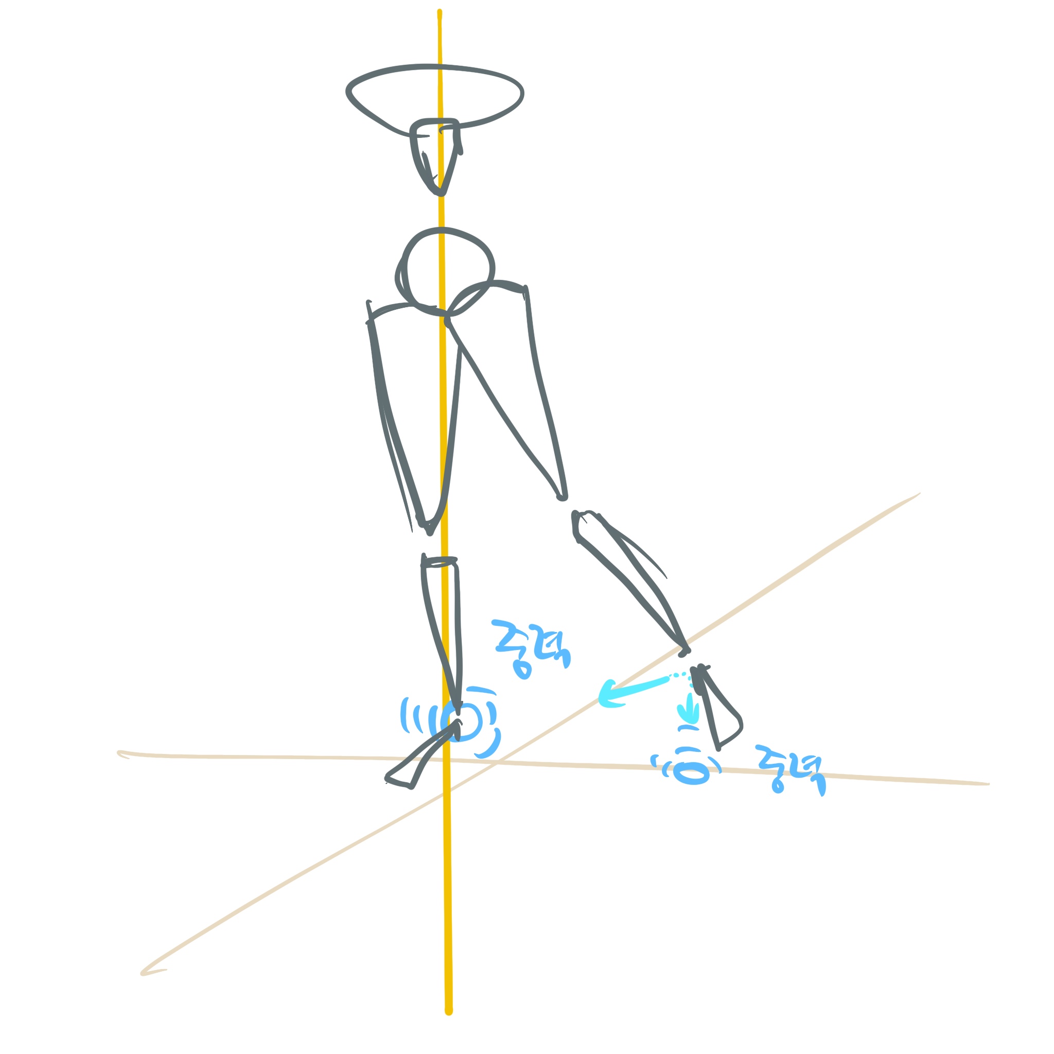 그런 움직임 속에서도 축에 있는 뒤꿈치와 바닥의 중력을 free leg가 영향을 받는 것처럼 움직여야