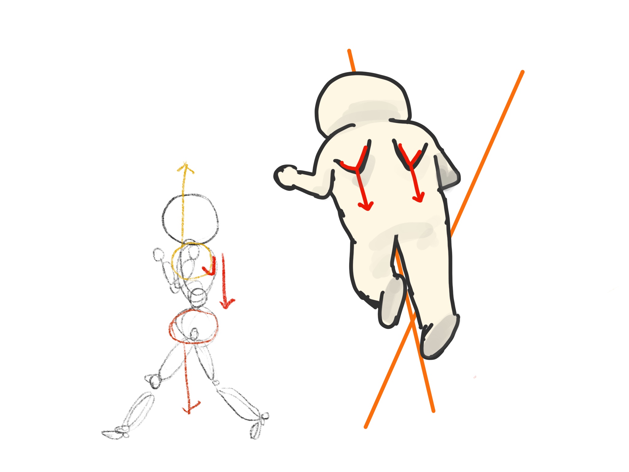 상체의 방향은 하늘을 향해야 하지만, 등에 있는 날개뼈는 바닥을 향해야 한다.