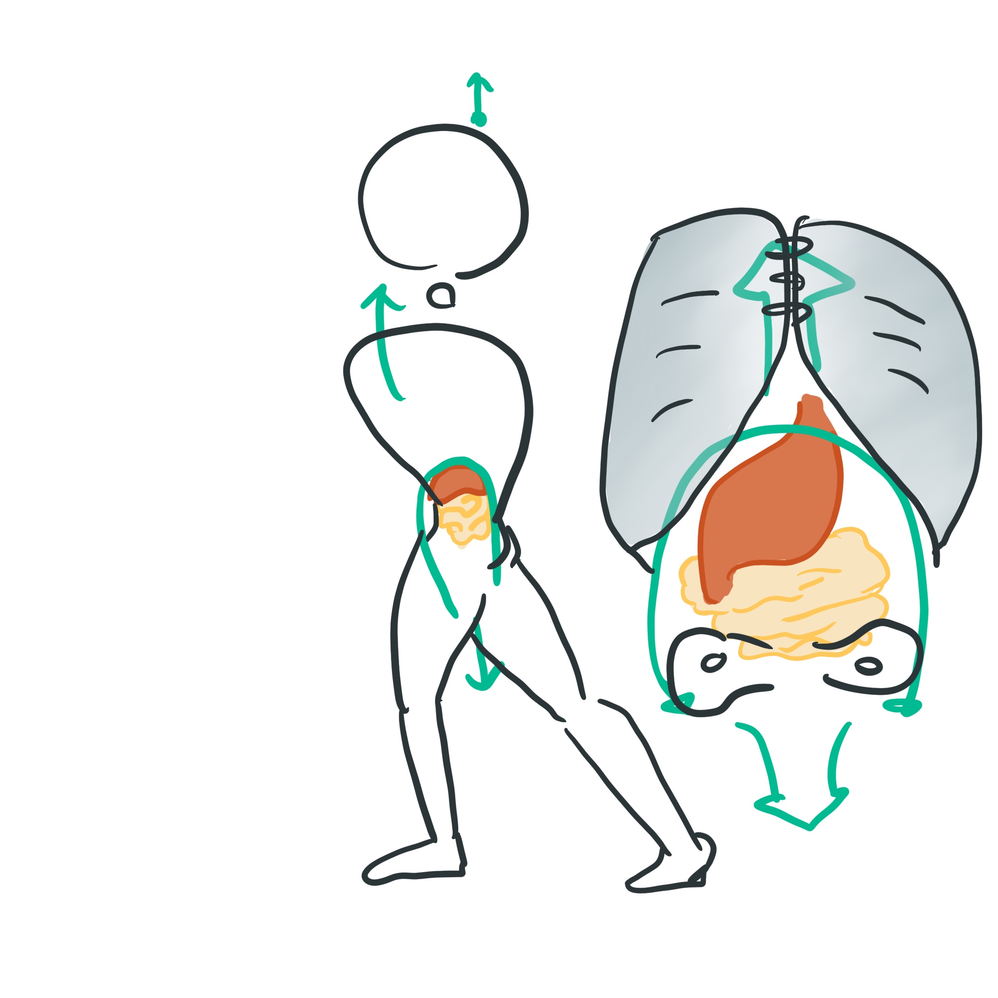 횡경막 아래 장기를 몸 밑으로 내리깔려고 하면서 움직여 보세요.