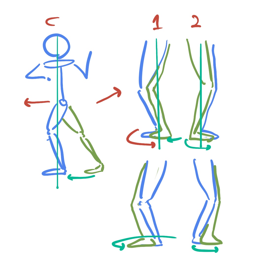 중요한 것은 다리를 모으기 전에 상체를 먼저 트는 것!