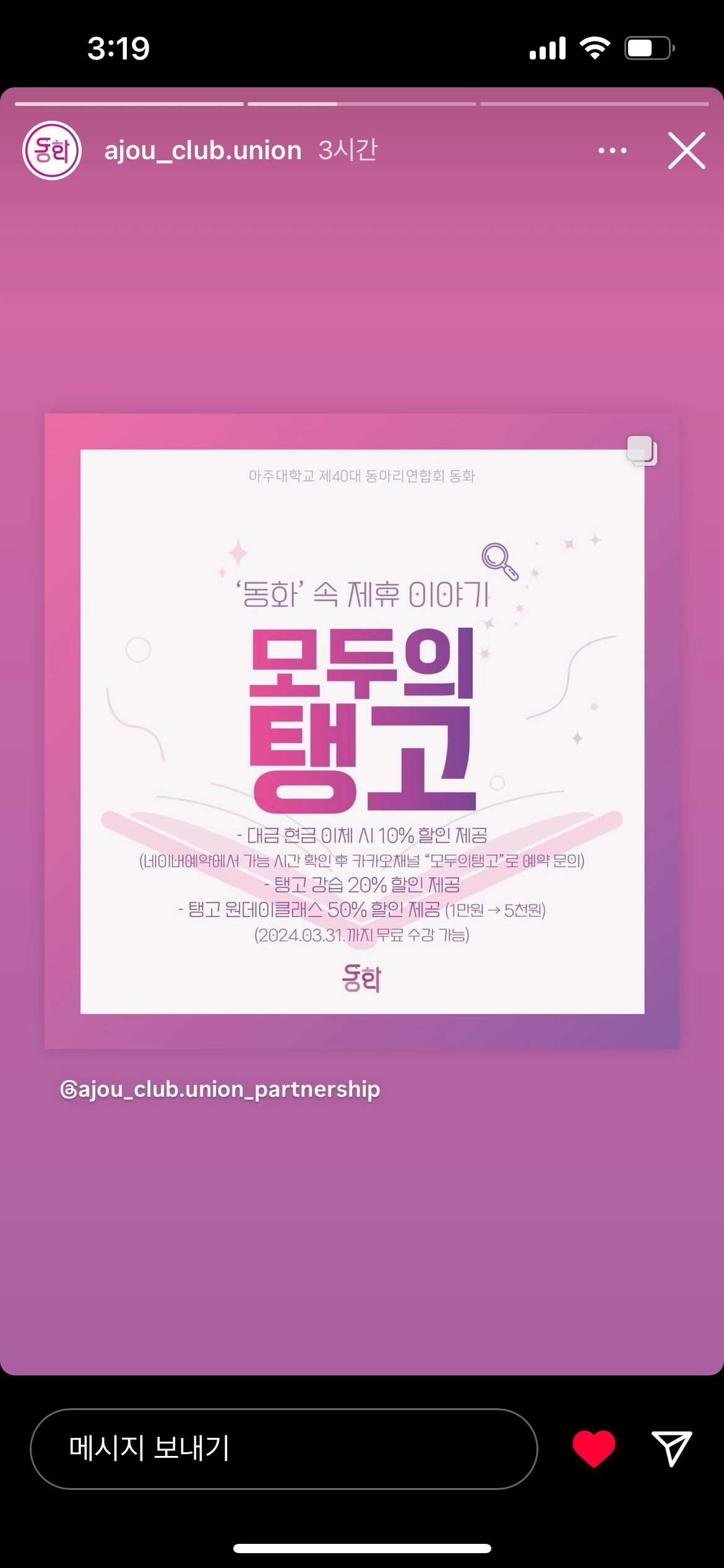 아주대동아리연합회 '동화'와 모두의탱고가 제휴!