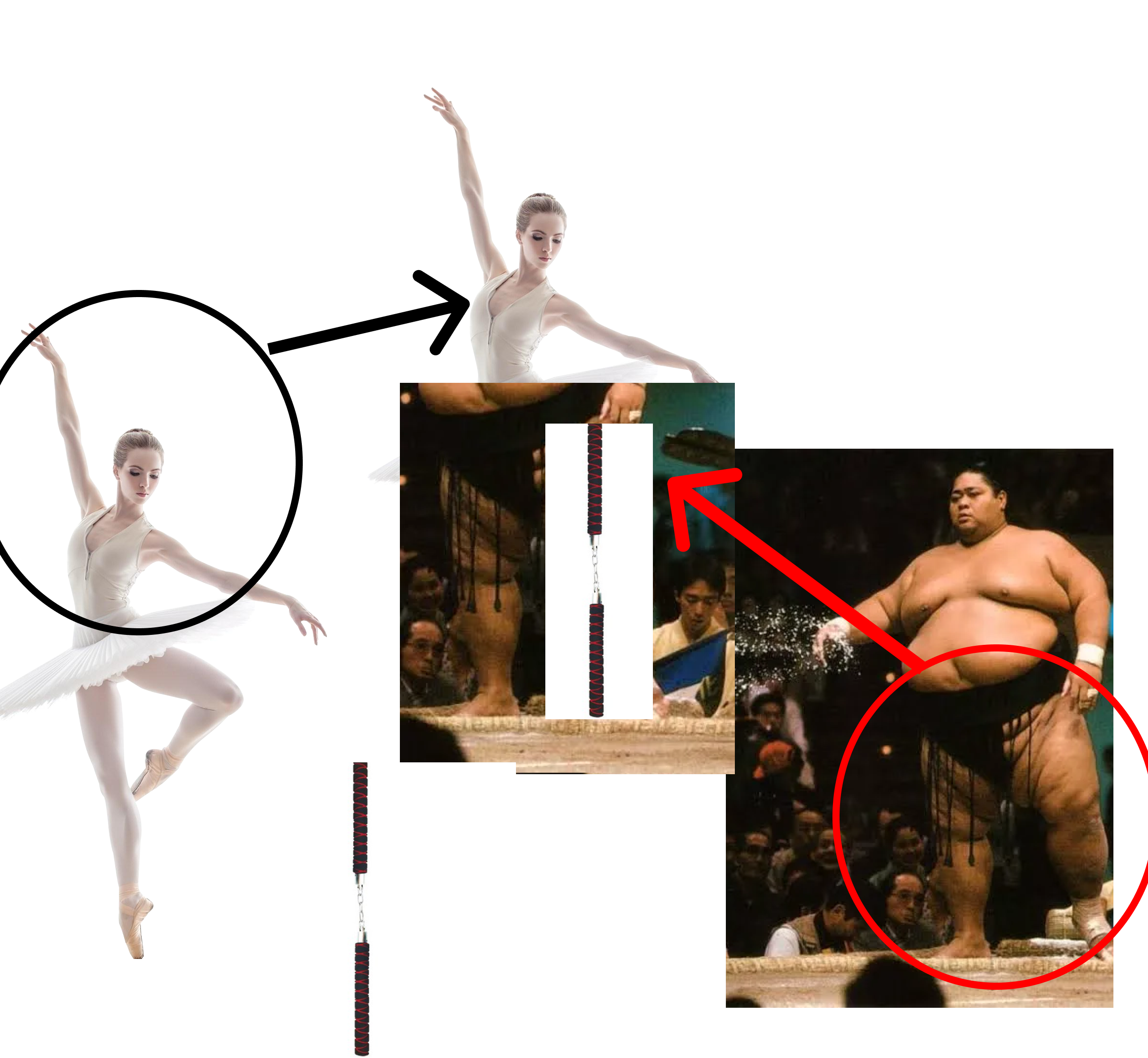 2. 배꼽 아래로는 바닥을 잘 움켜쥐는 무거운 하체가 있어야 합니다.