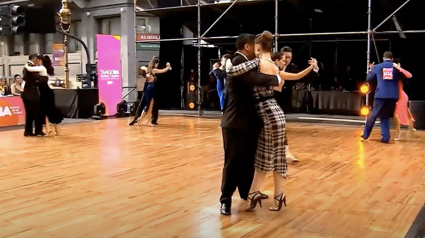 옷이 보다 평범하다. 탱고는 댄스복이 아니고 정장이나 드레스를 입어요. 이 차이가 뭐냐면 대게 댄스스포츠 댄스 의상들은 잠자리 같이 날개달린 화려함이나 가슴 쪽이 푹 파인 섹시함을 강조하는 의상들이 주를 이룹니다. 탱고는 여성분들은 스판성분이 있는 스커트나 대회나 파티에서도 드레스를 입습니다. 남성분들은 정장위주의 옷으로 보통 셔츠에 정장바지를 입습니다.