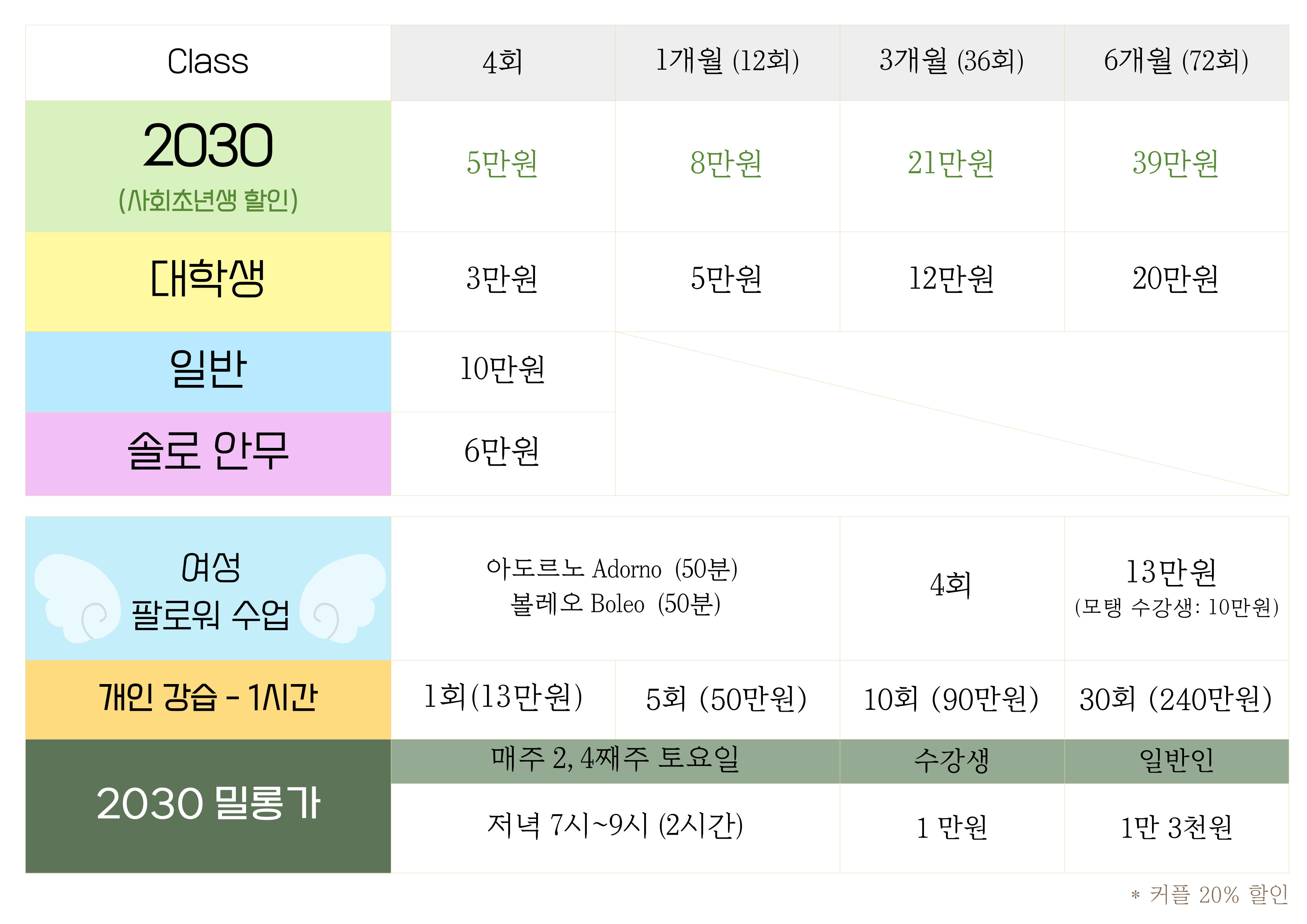2030세대 수업은 88년생 이후 출생 수업 가능합니다.