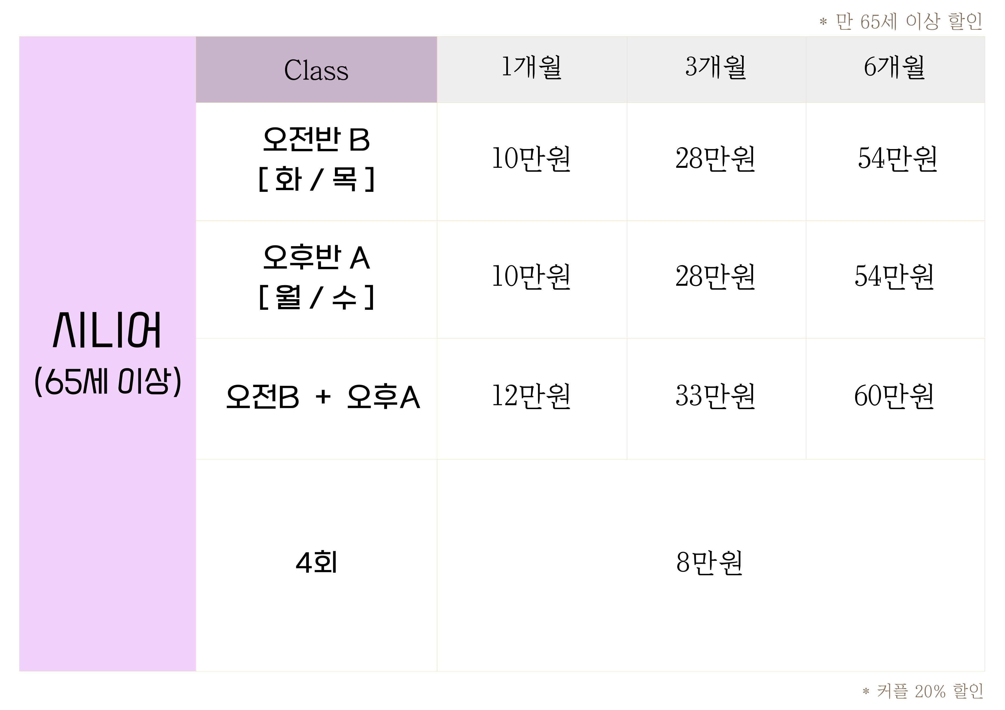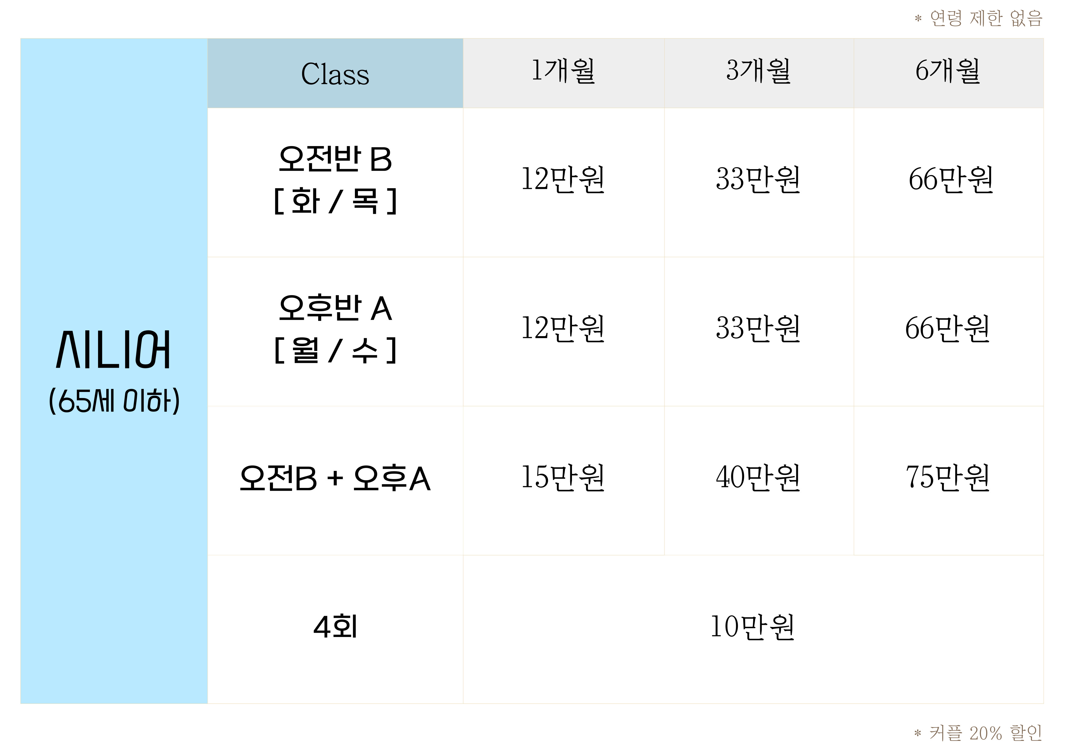 시니어 수업은 모든 연령대 수업 가능합니다.