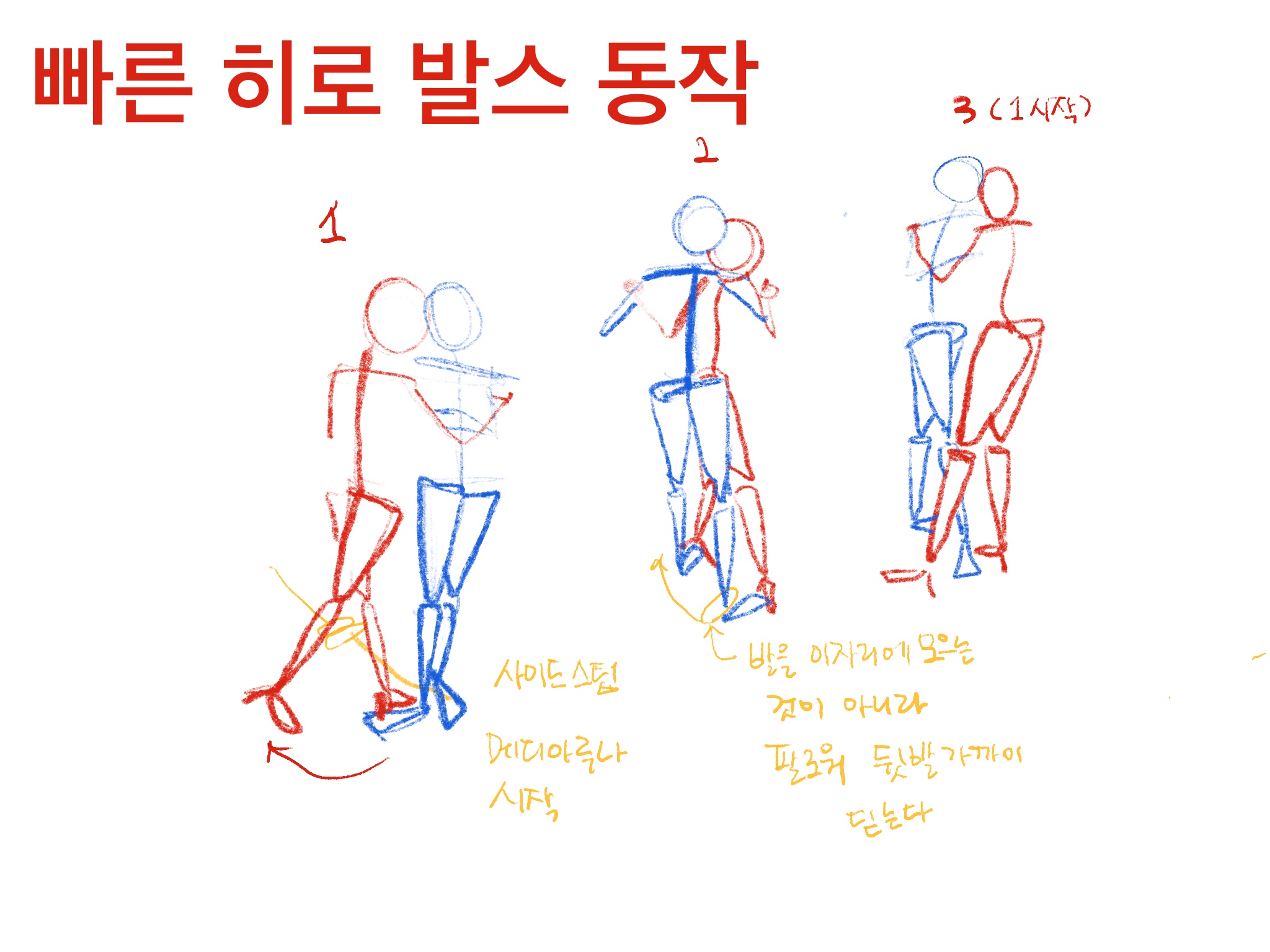 - 왼쪽 사이드 스탭 후 팔로워를 백오쵸 시키며 왼쪽으로 한 발 더 걷는다