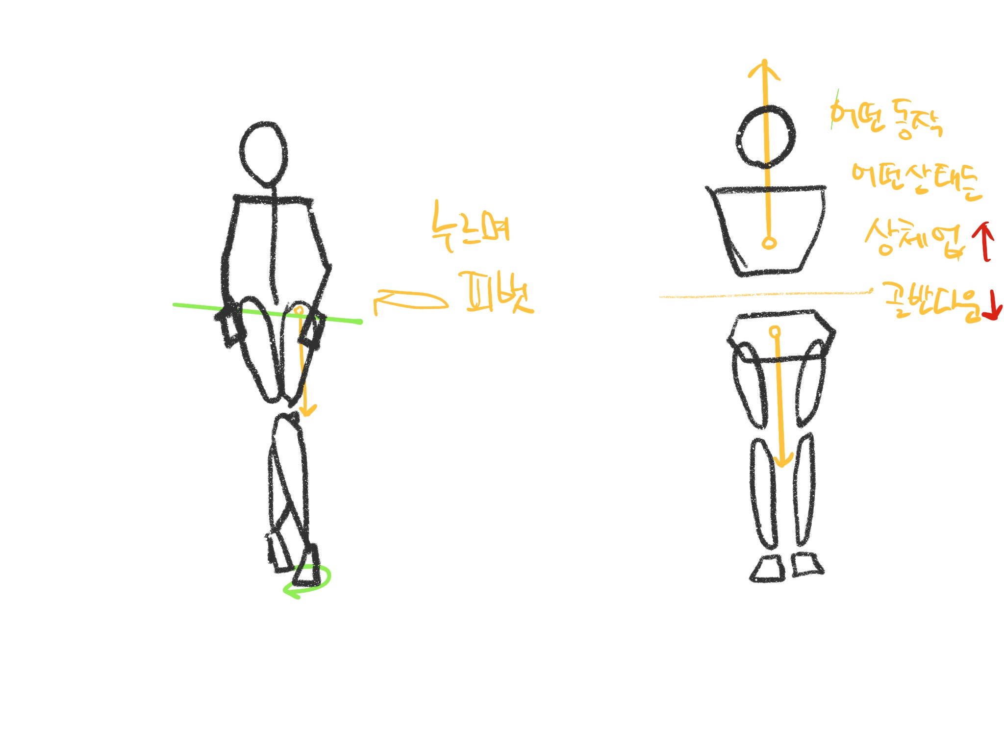 회전을 골반을 들어서 하려는 경향을 보일 수 있지만, 오히려 회전축 바깥에 있는 골반을 내려서 회전해야 안정적으로 피벗할 수 있다.