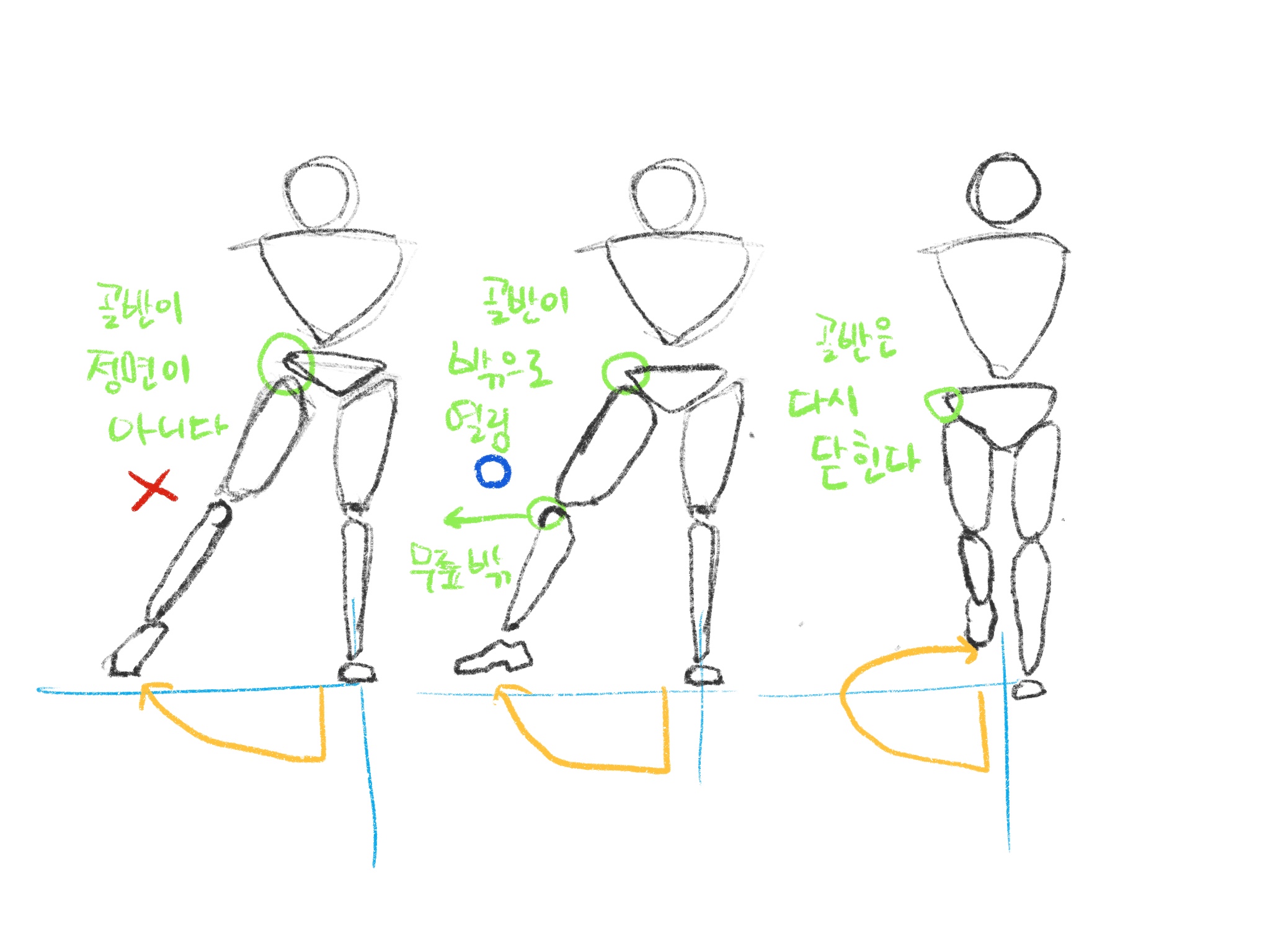 • 다리를 앞에서 밖으로 나가서 뒤로가는 동작중 사이드 상태일때 무릎의 방향은 정면이 아닌 바깥쪽을 향한다
