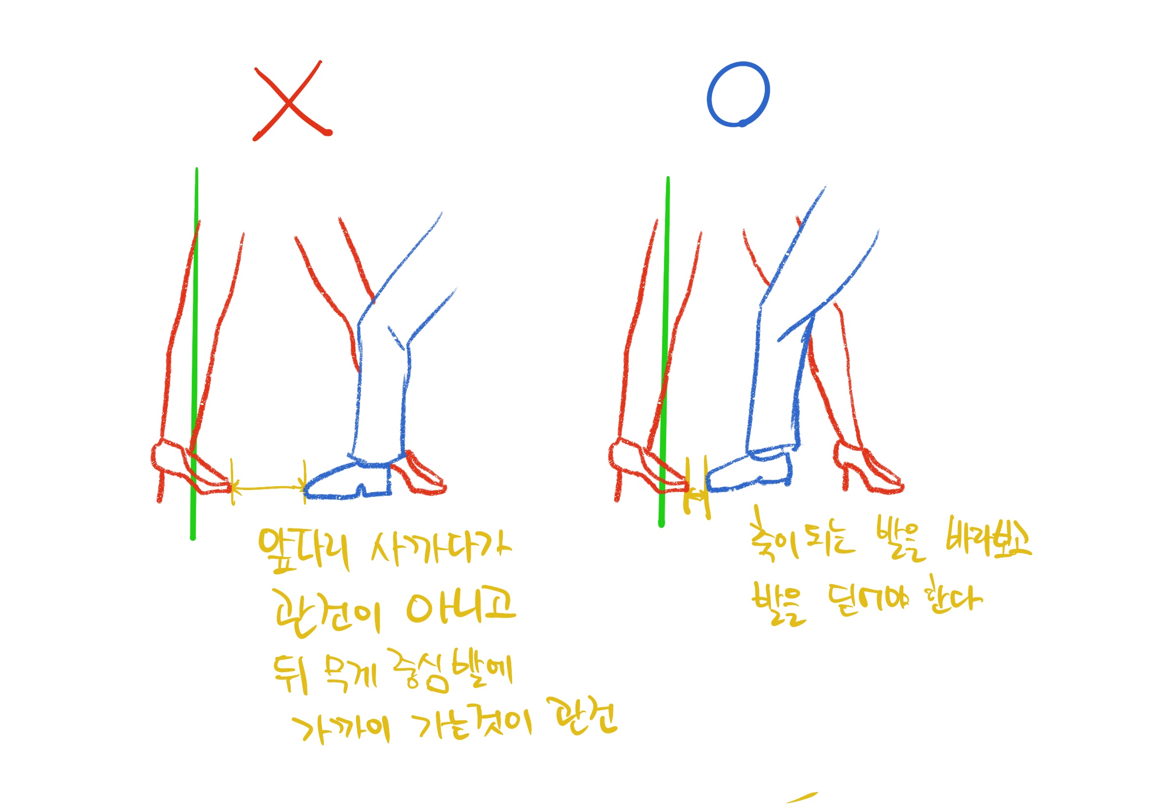 - 사까다 되는 무게 없는 다리를 너무 컨트롤 하려 하지 않는다.