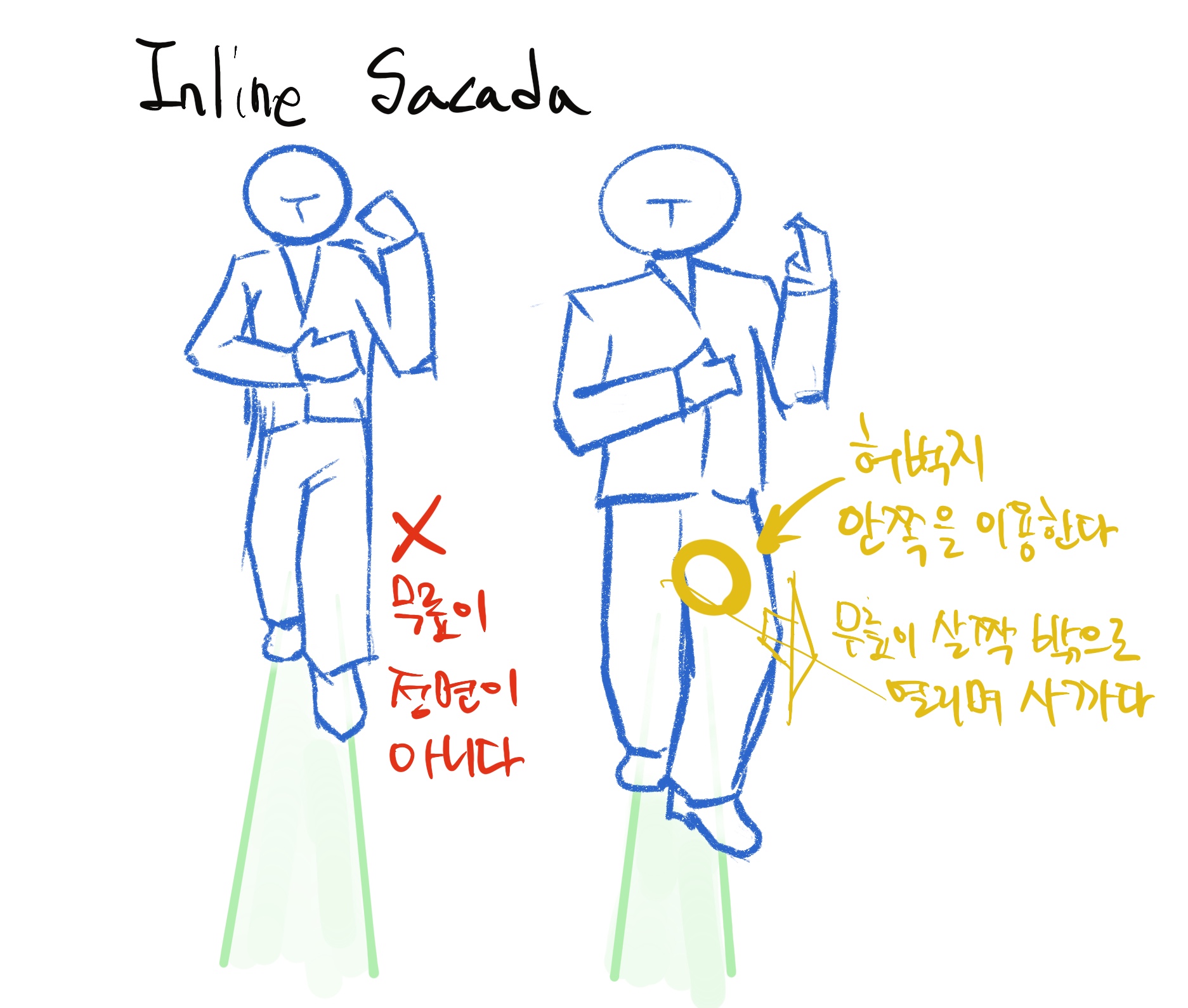 - 중요한 것은 팔로워 무게중심 축 발 가까이 사까다 할 다리를 옮기는 것