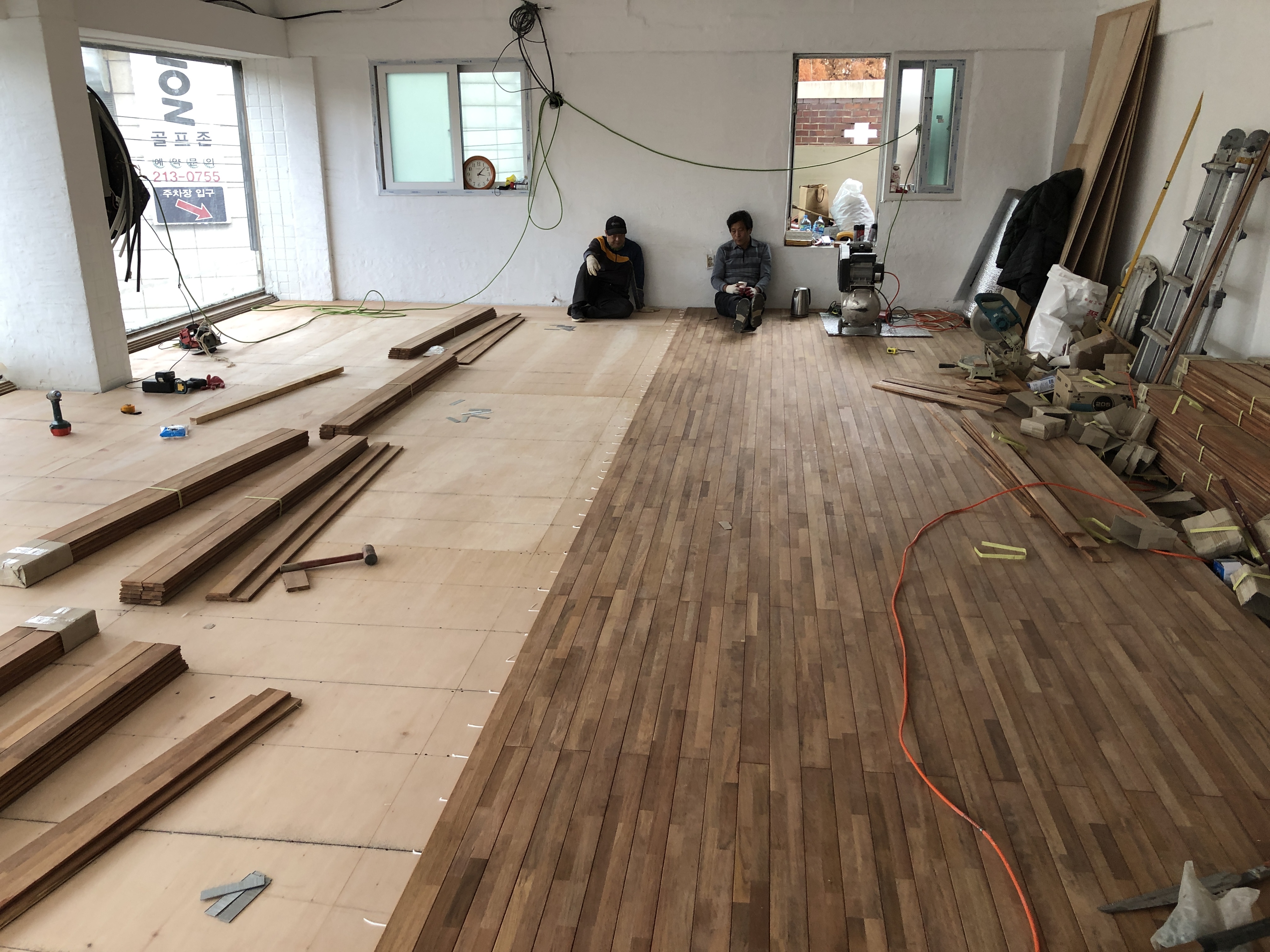 마루 완성! 여기에 왁스를 칠해서 마무리 할 거예요.
