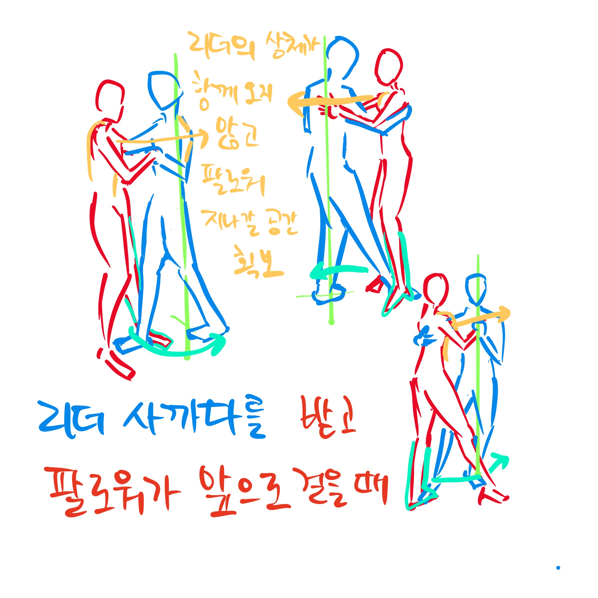 대게 사까다를 팔로워의 백오쵸 순간에 하게 되지만, 프런트로 걸어갈때에도 공간을 좁게 쓰기위해