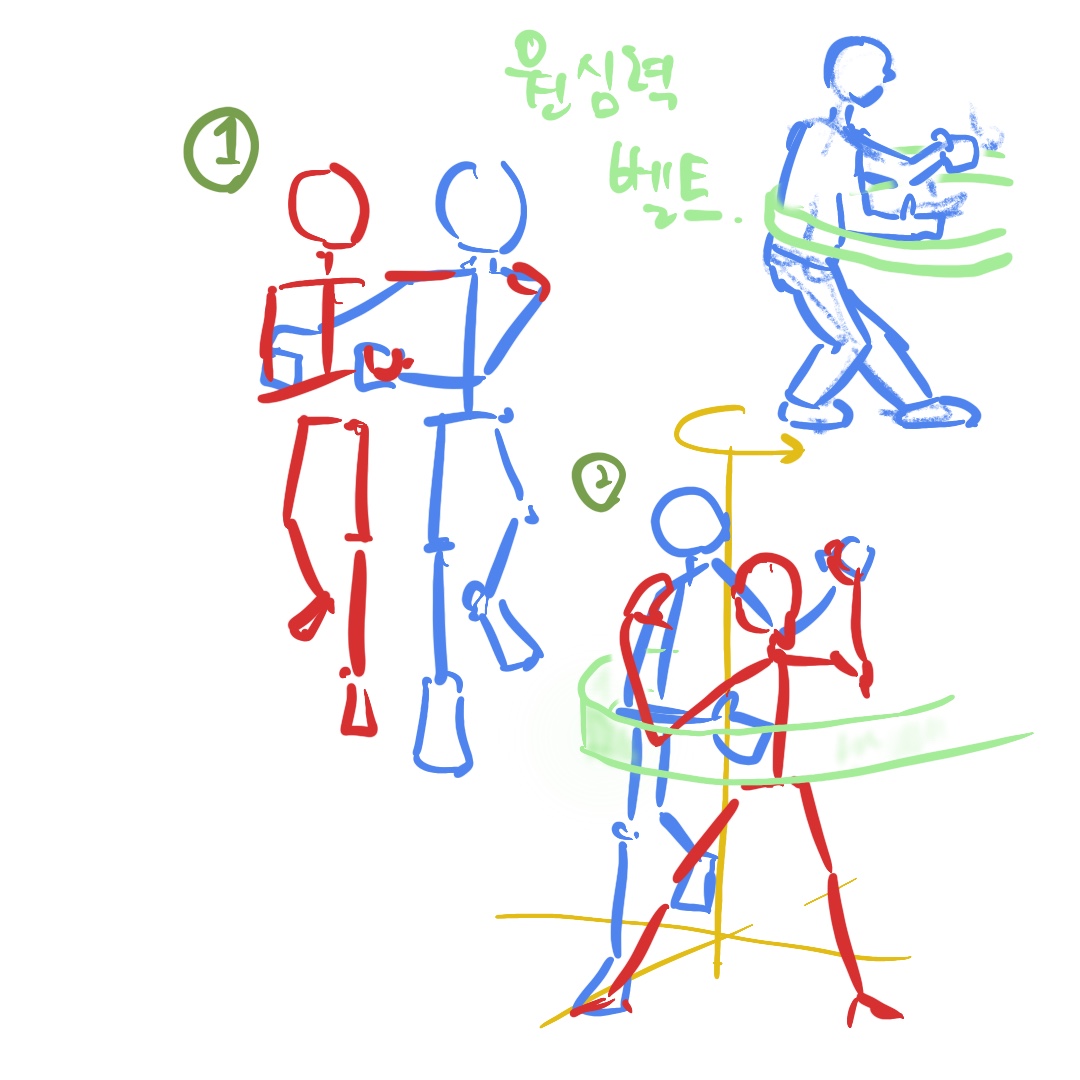 그 원심력의 위치는 등이라기 보다 허리 바로 위쪽입니다.