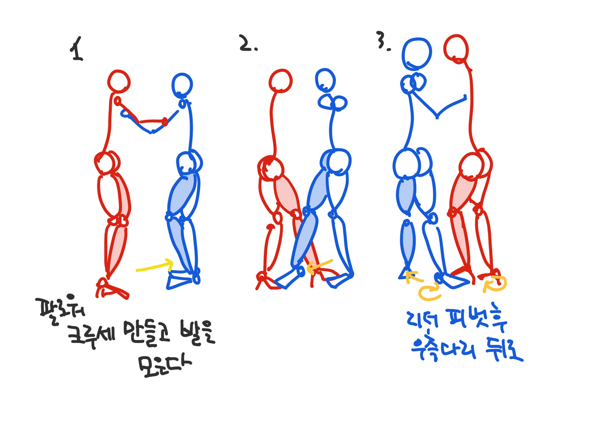 1. 팔로워 크루세 만들고 얼릉 리더도 발을 당겨 크루세를 만든다.